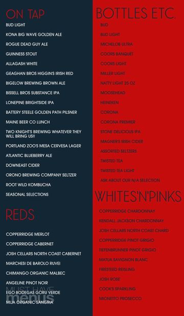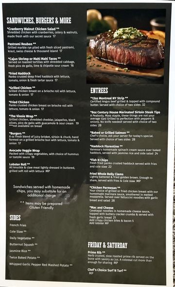Full menu for lunch and dinner, including pub grub & diner classics, soup, sandwiches, steaks, seafood & more! Always something different on our specials board too!